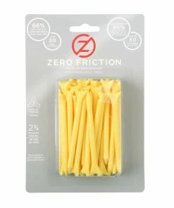 Zero Friction’s unique design drastically reduces the contact area between the tee and ball. This reduction in surface area decreases the amount of friction producing longer, straighter drives. Independent testing proves that with a 100 mph swing speed, a golfer can gain up to 4 yards of distance and over 5 yards of accuracy. Zero Friction are also safe for golf course mowers. They are constructed of biodegradable corn starch and other natural ingredients. Features an environmentally friendly product with recycled material is rated longest, most accurate tee in independent laboratory tests 3-prong top significantly reduces the contact between tee and ball providing unparalleled distance and accuracy.