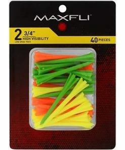 Maximize performance from the tee box by playing Pronged 2.75” High Visibility Golf Tees. Each tee features a low drag design engineered to promote increased accuracy and unrivaled distance. The durable plastic construction allows each tee to last longer than average wooden tees for repeated use. An assortment of high visibility green, orange, and yellow colors ensures you’ll find the Maxfli® Pronged 2.75” Golf Tee after you smoke your shot.