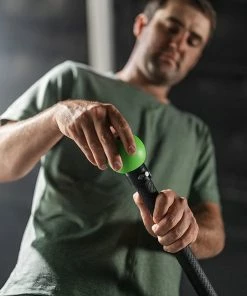 - Two quick-interchange, sweat-resistant rubber handles that attach to the Latex Training Cord to create resistance bands.