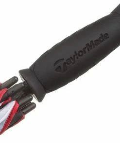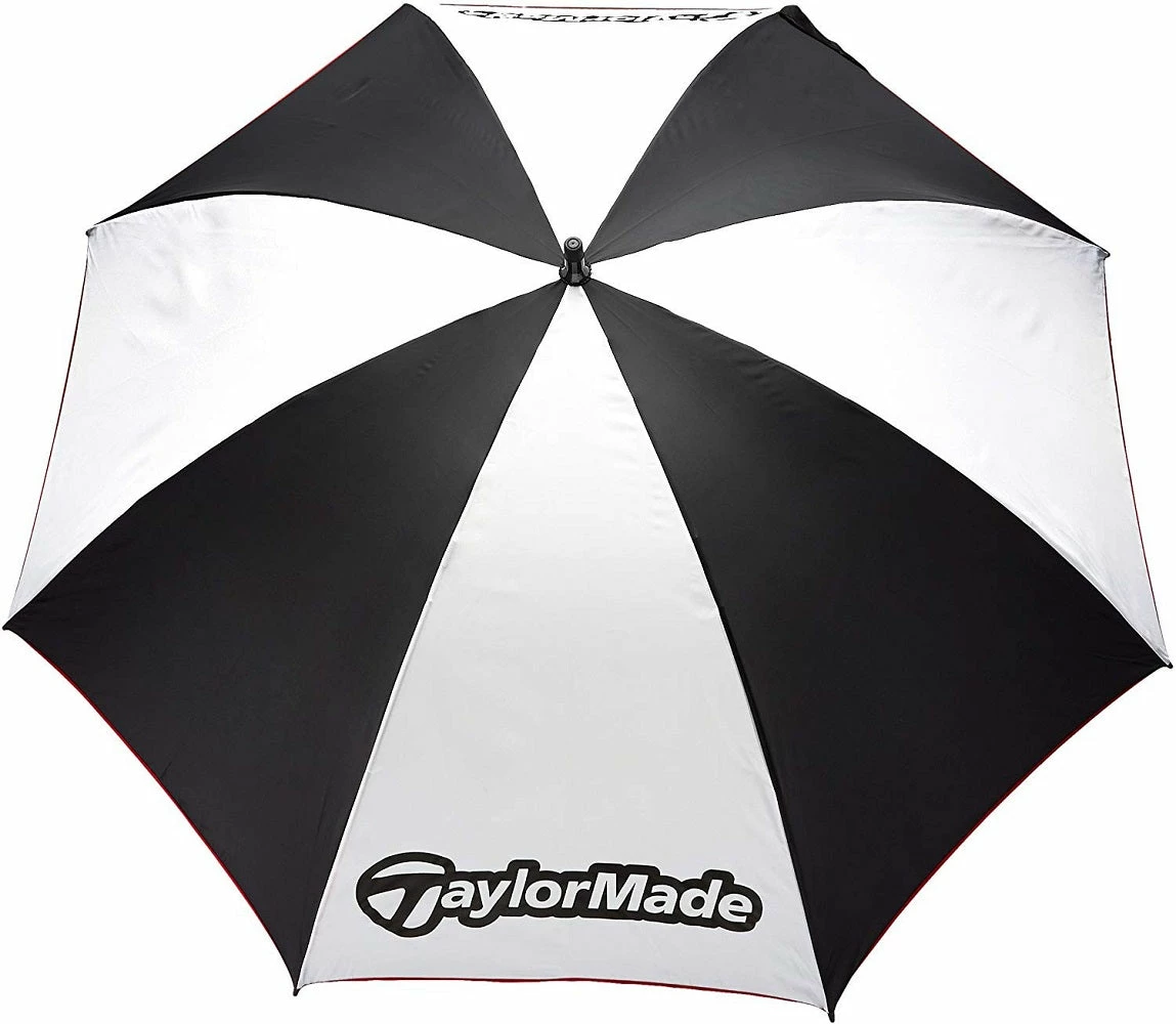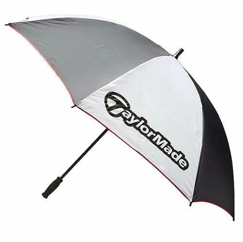Single canopy umbrellas are useful for providing weather protection. The black and white TaylorMade 60″ Single Canopy Umbrella features logos on the two panels and a manual spring mechanism to open. The interior has vibrant red fiberglass ribs. The handle is made for comfort with textured, contour rubber grip that is ergonomically correct.