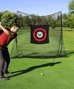 Set up your own range and practice at home with the Callaway 10′ Base Hitting Net! The large 10′ wide x 8′ high hitting area will support all your full swing training needs for every club in your bag.. The BASE Hitting Net is engineered with premium netting, reinforced fiberglass framing and a sturdy stainless steel pole base. It’s rated to catch ball speeds up to 190 mph which covers even the highest swing speeds.. The hanging target helps sharpen your focus and aim, and cradles each shot for easier ball retrieval. Assembly is fast and easy; set up and take down in 10 minutes. The net is free-standing for indoor use, and includes metal ground stakes for max stability outdoors. Use the provided nylon carry case for portability and storage.