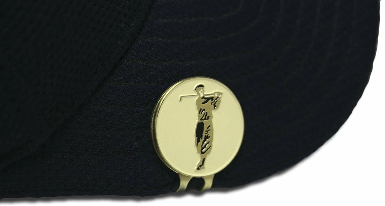 - Magnetic ball marker featuring vintage-style golfer