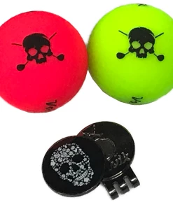 Set yourself apart on the course with the Volvik VIVID Matte Skull Edition Golf Balls + Hat Clip Set. Equipped with a striking VIVID Matte finish, these golf balls feature unique skull logos and are designed to enhance distance for golfers with swing speeds between 70-95 mph. A larger, 75 compression core construction combines with an HPF inner layer to produce explosive distance at impact. A magnetic hat clip easily secures to the brim of your hat and includes a skull ball marker for added style on the green.
